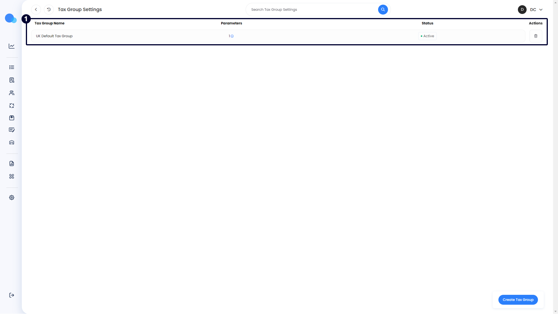 Create a Tax Group: Locate and click the "Create Tax Group" button at the bottom right of the screen.